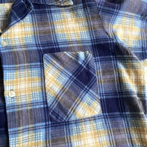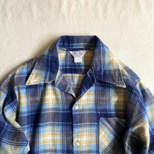 70年代特有の大きめな襟に携帯とかタバコの箱がぴったり収まりそうな、縦長胸ポッケ。