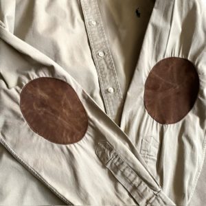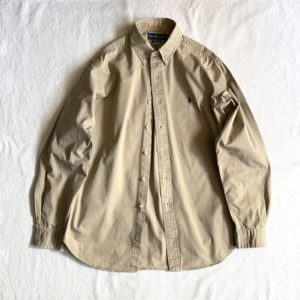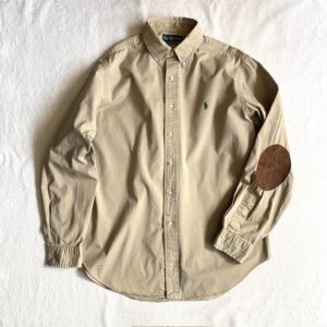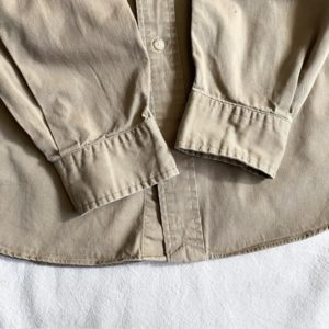 コットンツイルのしっかりしたサンドベージュカラーのボディーに深緑のワンポイント刺繍。