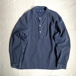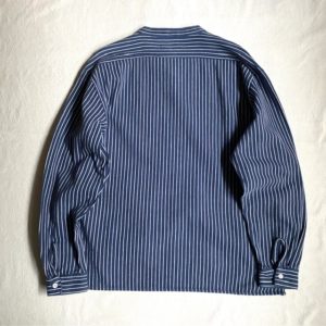 プルオーバーにノーカラーの作りでシャツの上に重ねてみたり、インナー使いでもしっかり存在感あるユーロならではのワークシャツですね。