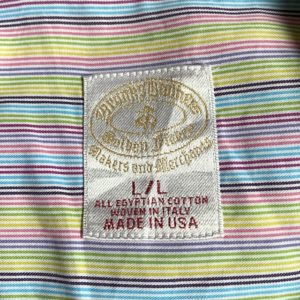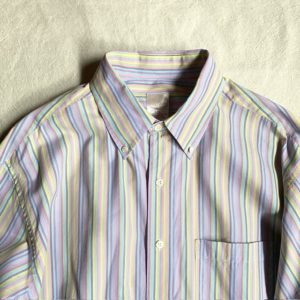 ボタンダウンの元祖だけあって襟元、上品な雰囲気漂います。