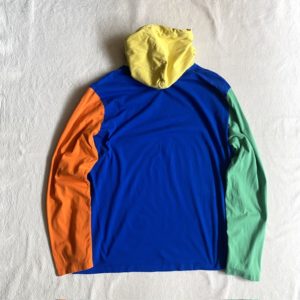 ビビットな配色のカットソー素材のフーディ。