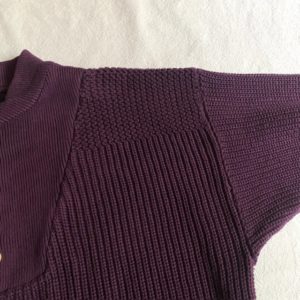 肩ヨークと袖裾に編み変え入ったデザイン。
