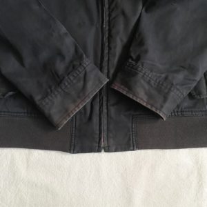 襟袖ボディにヤケあり、ブランドタグ上のレザーパーツ外れありの状態ですが、