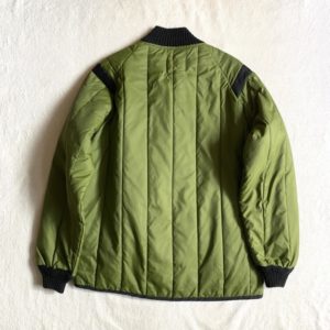 こちらシンプルですが気の利いたデザインのキルティングジャケットとなってます。ラグランスリーブなので肩が綺麗に落ちるのは嬉しいですね。黒×オリーブの配色も◎